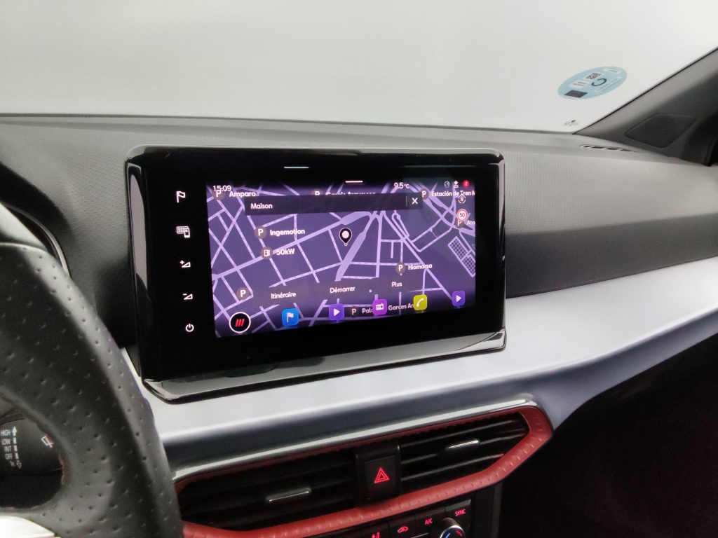 - Volant sport multifonctions à méplat en cuir Nappa perforé avec surpiqûres rouges et logo FR